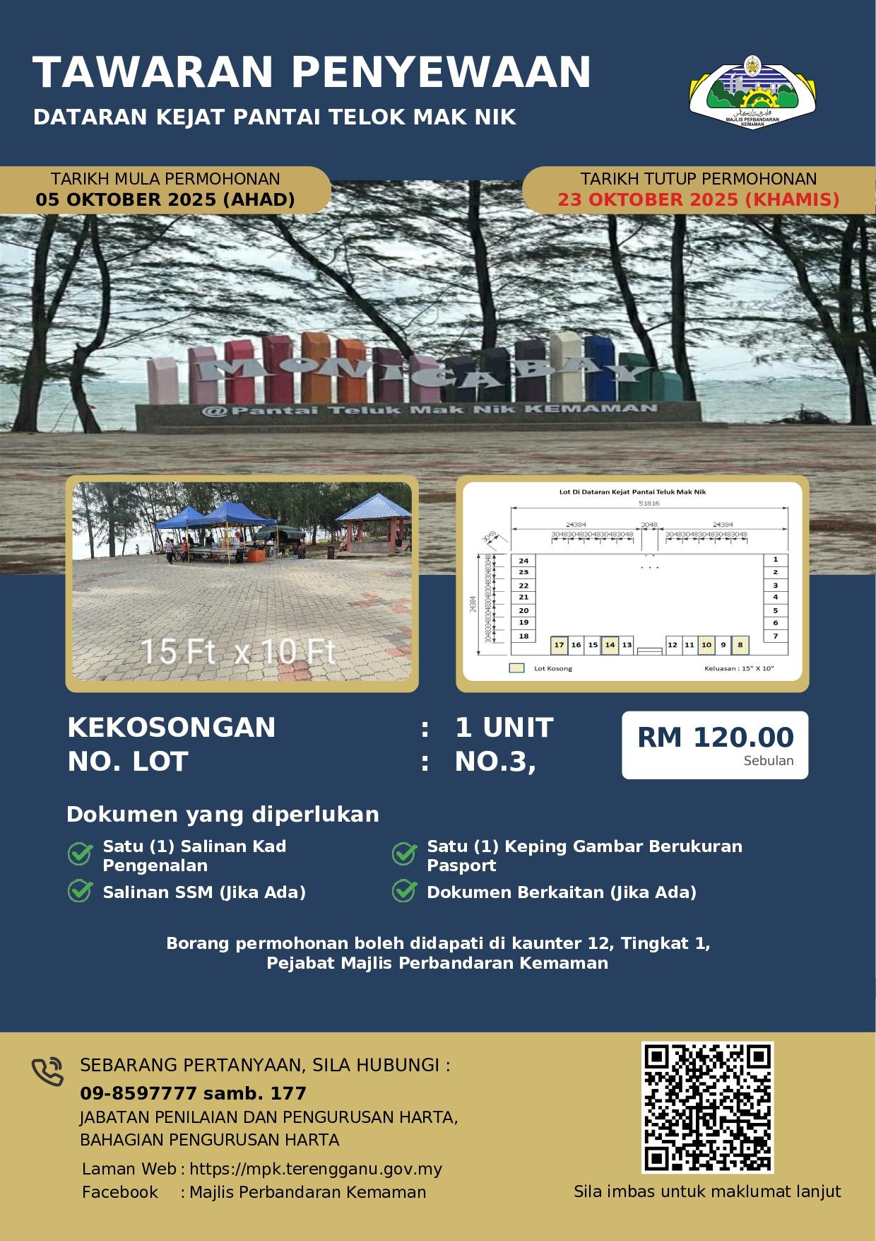 TAWARAN PENYEWAAN LOT SAYUR / LOT KUIH PASAR BESAR CHUKAI